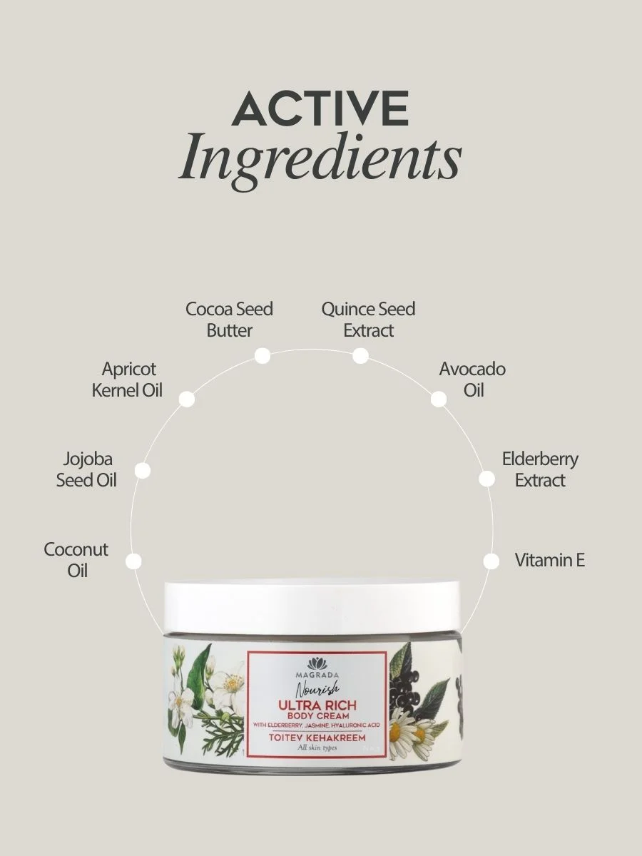 Aqua, Caprylic/Capric Triglyceride, Cocos Nucifera (Coconut) Oil, Polyglyceryl-3 Methylglucose Distearate, Glycerin, Carthamus Tinctorius (Safflower) Oil*, Prunus Armeniaca (Apricot) Kernel Oil*, Simmondsia Chinensis (Jojoba) Seed Oil*, Theobroma Cacao (Cocoa) Seed Butter, Glyceryl Stearate, Persea Gratissima (Avocado) Oil, Stearyl Alcohol, Parfum (Natural), Sodium Polyacrylate, Ethylhexyl Stearate, Pyrus Cydonia (Quince) Seed Extract, Sambucus Nigra (Elderberry) Fruit Extract, Sodium Hyaluronate Crosspolymer, Polyglyceryl-4 Diisostearate/Polyhydroxystearate/Sebacate, Sodium Isostearate, Lecithin, Ascorbyl Palmitate, Helianthus Annuus (Sunflower) Seed Oil, Tocopherol, Citric Acid, Sodium Benzoate, Potassium Sorbate, Phenoxyethanol, Ethylhexylglycerin