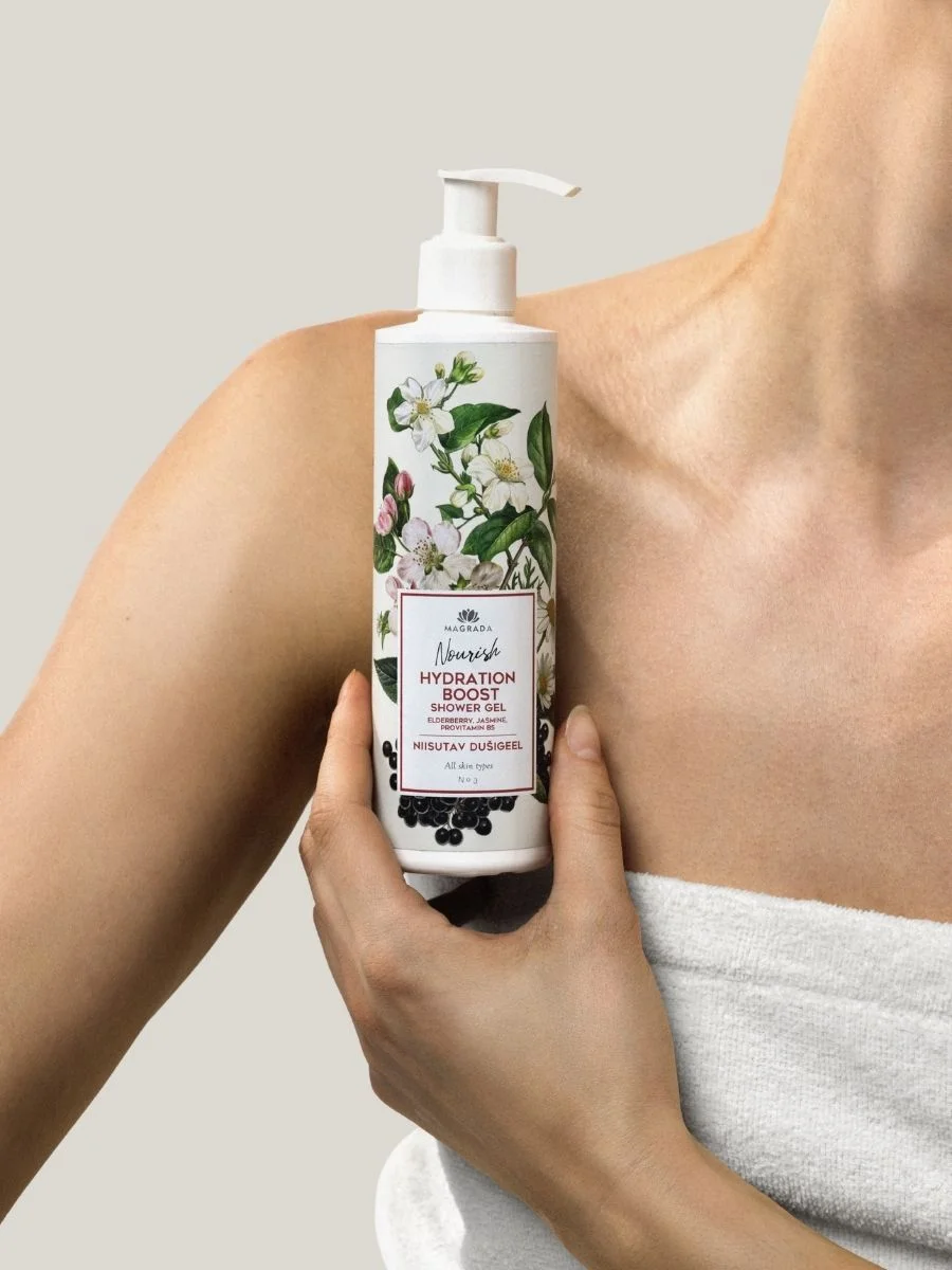 The shower gel you want to return to. The moisturizing shower gel with elderberry and jasmine is designed to gently cleanse the skin, supporting its moisture balance and turning each shower moment into a small moment for yourself. It is silky, hydrating, and skin-pampering, leaving skin with a fresh, fruity fragrance. Skin feels fresh, hydrated, and cared for, without a dry or tight feeling.