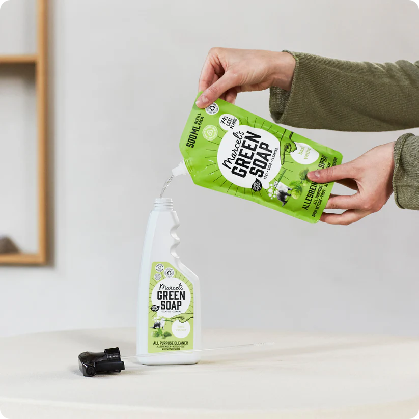 Marcel’s Green Soap refill pack is at least 97% biodegradable. With this cost-effective refill, you save 56% plastic compared to a bottle.