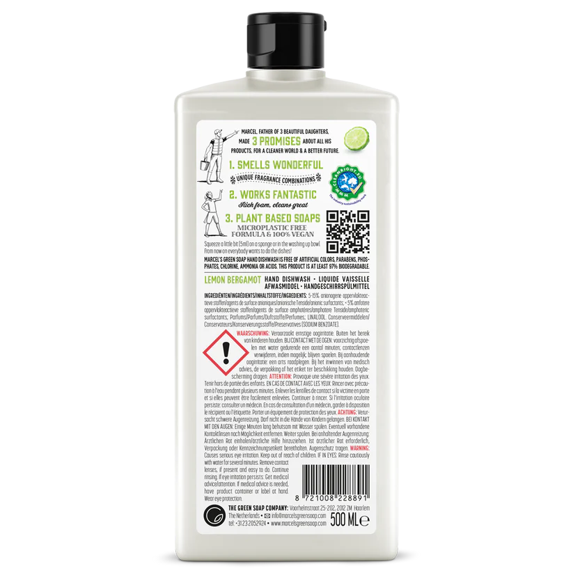 Enjoy sparkling clean dishes and a fresh citrus scent every time you wash your dishes with Marcel’s Green Soap hand dishwashing liquid. The harmony of scents – the fresh and energetic note of lemon with the soft, relaxing undertone of bergamot – makes everyday washing a pleasant ritual.