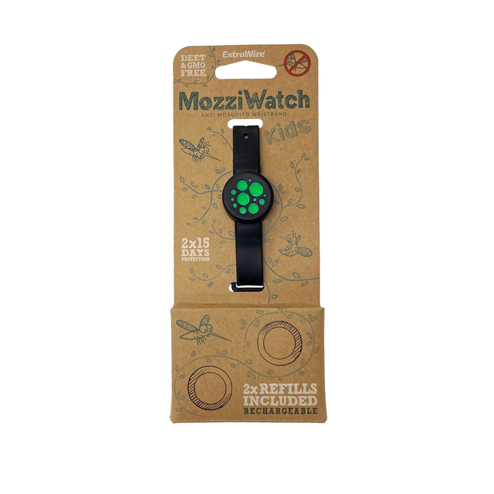 MozziWatch is a mosquito repellent wristband that keeps annoying buzzers away. Inside the silicone chamber of the mosquito wristband is a rubber tablet infused with natural oils, which emits a fresh lemon-like fragrance that repels mosquitoes, ticks, and other biting insects. MozziWatch uses only natural active ingredients: lemon eucalyptus, peppermint, and lavender oils. Simply wear the mosquito wristband around your wrist or ankle, and the active substances are gradually released upon contact with air, creating a pleasant aromatic cloud around you.