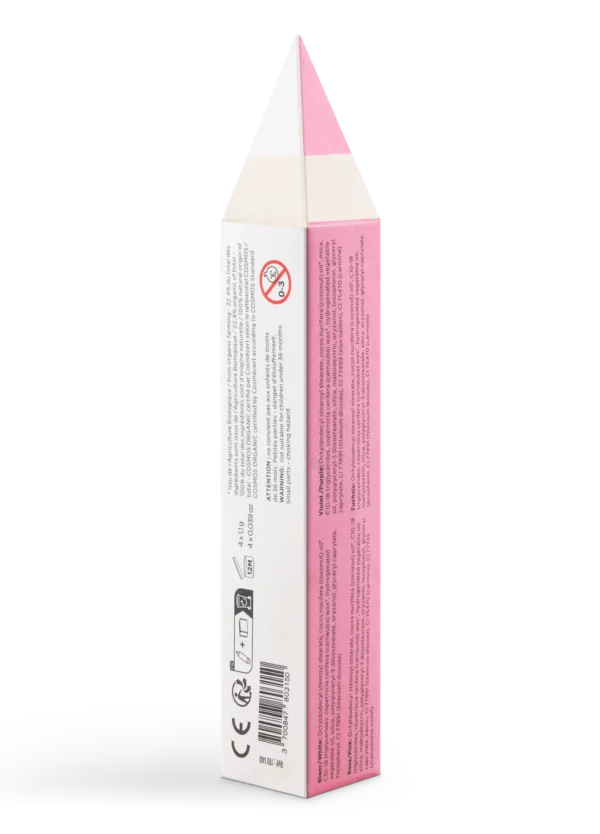 Ingredients: RICINUS COMMUNIS (CASTOR) SEED OIL*, HYDROXYSTEARIC/LINOLENIC/OLEIC POLYGLYCERIDES, OCTYLDODECANOL, COPERNICIA CERIFERA CERA (COPERNICIA CERIFERA (CARNAUBA) WAX)*, PRUNUS ARMENIACA (APRICOT) KERNEL EXTRACT, C10-18 TRIGLYCERIDES, HELIANTHUS ANNUUS (SUNFLOWER) SEED OIL*, MICA, CANDELILLA CERA (EUPHORBIA CERIFERA (CANDELILLA) WAX), AROMA, BUTYROSPERMUM PARKII (SHEA) BUTTER*, PERSEA GRATISSIMA (AVOCADO) OIL*, SIMMONDSIA CHINENSIS (JOJOBA) SEED OIL*, PUNICA GRANATUM (POMEGRANATE) FRUIT EXTRACT*, CHAMOMILLA RECUTITA (MATRICARIA) FLOWER EXTRACT*, ELAEIS GUINEENSIS (PALM) BUTTER*, LECITHIN, TOCOPHEROL, ASCORBYL PALMITATE, CITRIC ACID, CI77891 (TITANIUM DIOXIDE), CI77492 (YELLOW IRON OXIDES)