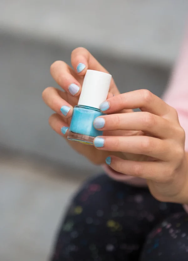 - Glittery blue nail polish – peels off like a sticker, no remover needed