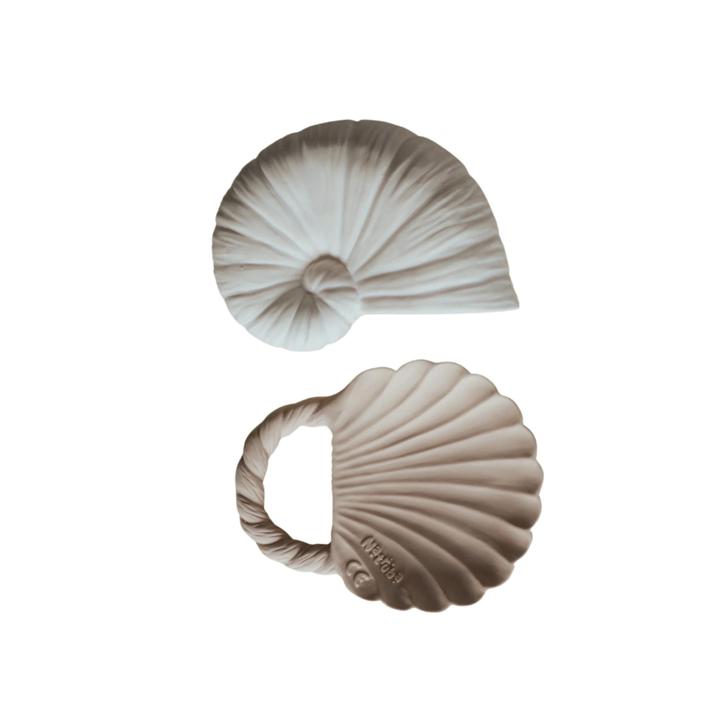 The shell-shaped mold can be used as a sand scoop at the beach or just for play in the bath. The tubular shell is hollow inside and can be used to hold and pour water. The products are neither sharp nor hard, making them especially suitable for little ones to play with.
