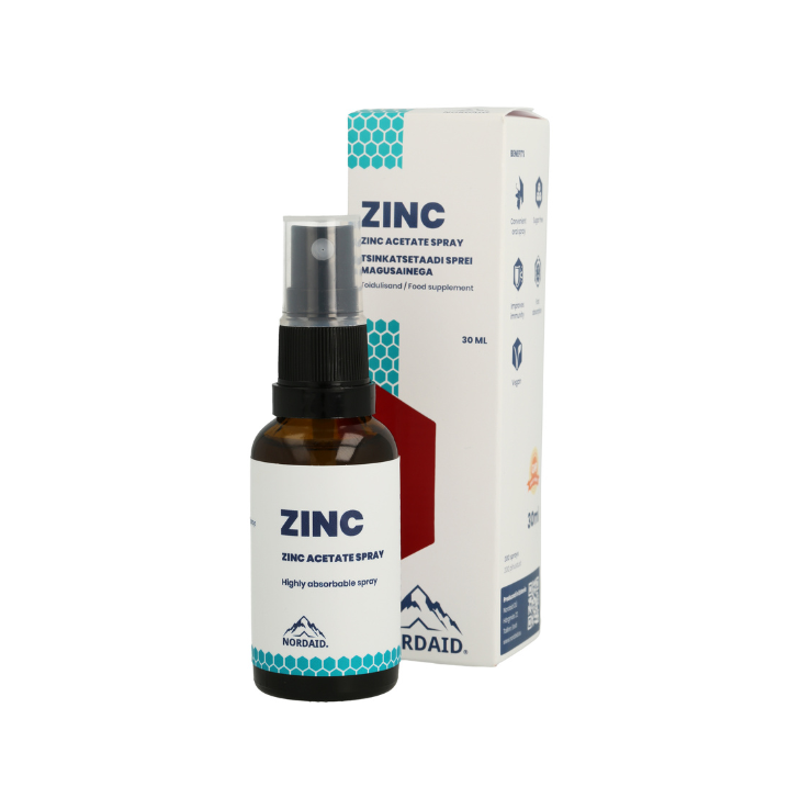 Nordaid’s zinc acetate spray is easily absorbed as it enters the bloodstream immediately through the mucous membrane of the mouth. Zinc contributes to the normal functioning of the immune system and plays an important role in cell division and protein synthesis.