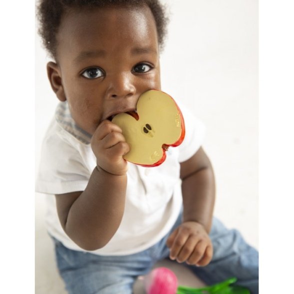 Oli and Carol natural rubber toy apple for chewing, bathing, and playing.
