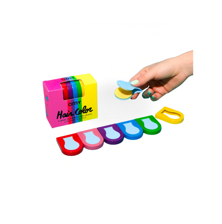 Instantly add colorful shine to your hair! The set includes 6 small hair chalks (pink, red, purple, blue, green, and yellow) to create unique hairstyles. Suitable for both light and dark hair, whether dry or damp.