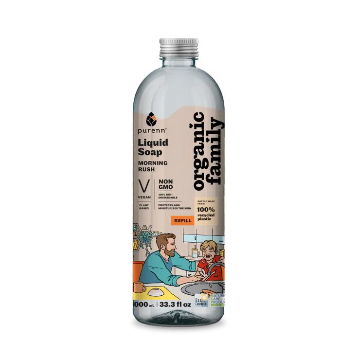 With a fresh scent, the liquid soap with sea buckthorn and marigold extracts cleans hands and moisturizes them during washing.