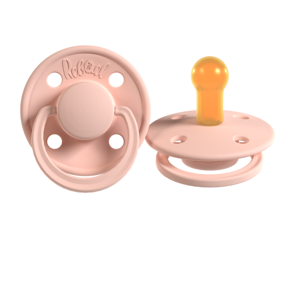 Trendy pacifiers made in Denmark in beautiful shades. They comply with EN-1400 standard requirements and are 100% BPA-free. Rebael pacifiers have a nipple made of natural rubber, also referred to as natural rubber latex. In Rebael pacifiers, the natural rubber is allowed to dry naturally, without chemicals. This means the manufacturing process takes a little longer but ensures cleaner, more durable, and safer pacifiers.