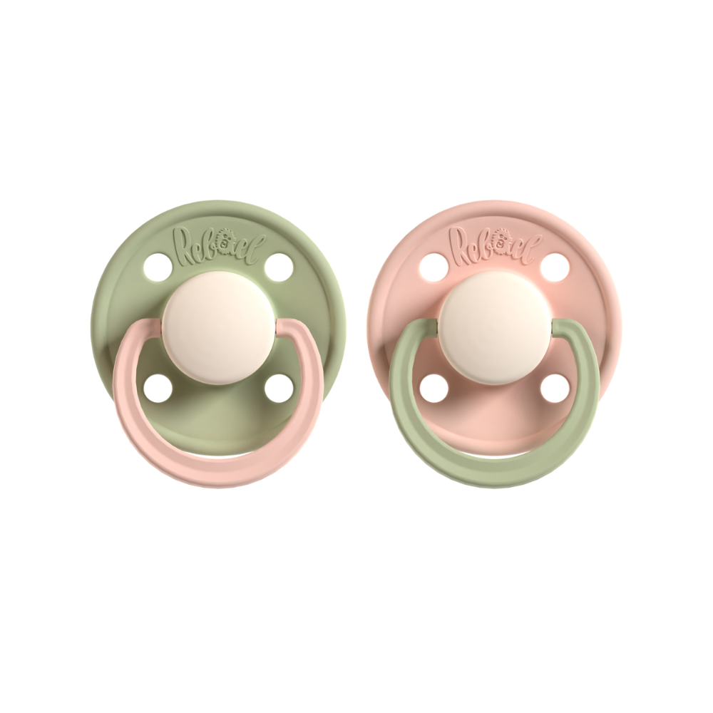Trendy pacifiers made in Denmark in beautiful shades. These comply with the EN-1400 standard requirements and are 100% BPA-free. Rebael pacifiers feature a natural rubber nipple, also referred to as natural rubber latex. In Rebael pacifiers, the natural rubber is allowed to dry naturally, without chemicals. This means the production process takes a little longer, but ensures pacifiers that are purer, more durable, and safer.