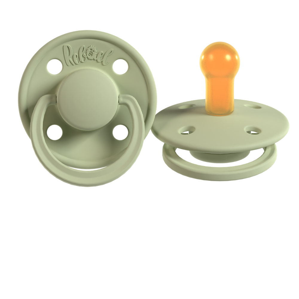 Trendy pacifiers made in Denmark in beautiful colors. These comply with EN-1400 standard requirements and are 100% BPA-free. Rebael pacifiers feature a natural rubber nipple, also known as natural rubber latex. In Rebael pacifiers, the natural rubber is left to dry naturally, without chemicals. This means the manufacturing process takes a little longer, but ensures purer, more durable, and safer pacifiers.