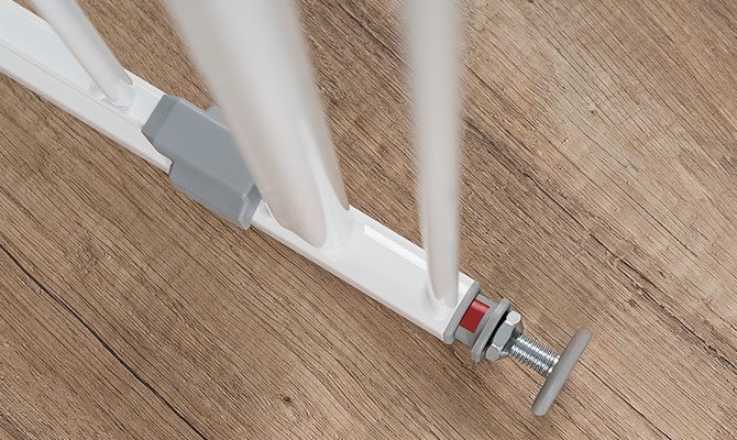 Thanks to the pressure-mount system, the gate can be quickly and tool-free installed in a doorway or passage. Installation does not damage walls or door frames, making it an ideal solution for rental apartments. The integrated installation indicator visually confirms that the gate is securely fastened.