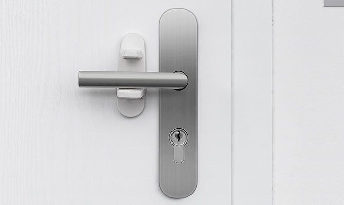 As children become more mobile, take their first steps, and start pulling themselves up on furniture, they soon discover door handles – these are just the right height for even the smallest ones. With our door handle lock, you can easily and effectively prevent your child from opening the front door unnoticed.