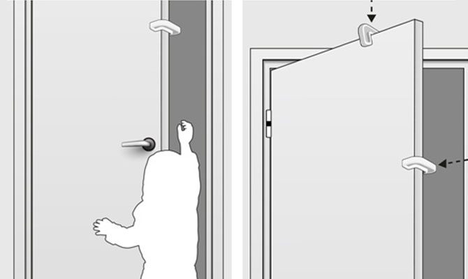 • Easy to install – requires no glue, screws, or tools, attaches securely to the door