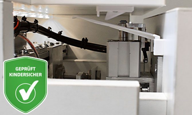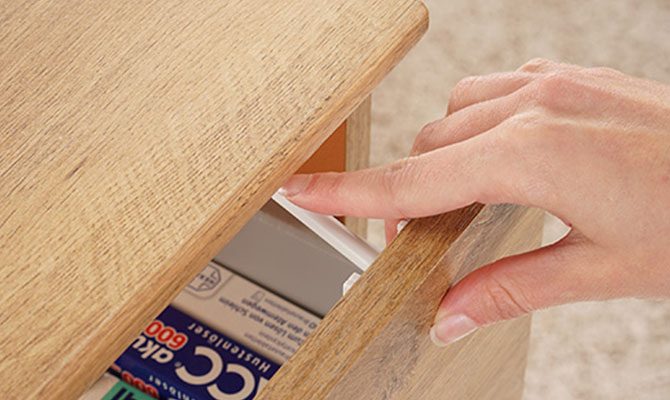 The lock keeps drawers and cabinets securely shut, preventing both opening and accidental closing. The drawer can only be opened slightly until the locking lever engages – in this position, the drawer cannot be fully opened or closed. This protects the child from both dangerous contents and trapped fingers.