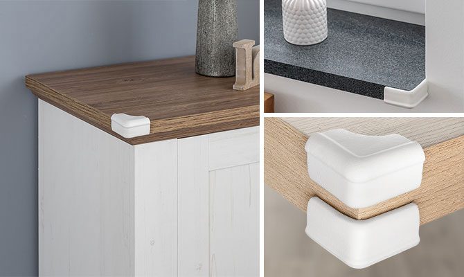 Suitable for different surfaces: table, cabinet, dresser, and windowsill corners. For complete protection, the corner protector can be installed on both the top and bottom corners. It can be combined with the REER edge guard (product code: 82040) to protect children not just from sharp corners but also sharp edges.