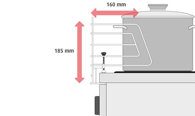 • 16 cm long side wings prevent pulling cookware down from the sides