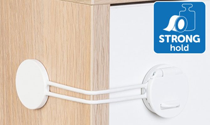 Specially developed adhesive tape ensures a strong hold without drilling or screwing. If needed, the lock can be removed without damaging furniture.