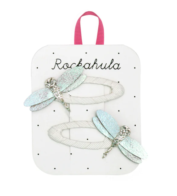 When they’re not gently hovering over their pond, these two adorable little dragonflies sit perched on our grosgrain ribbon-wrapped clips. Each has double wings to help them fly fast, and the sparkling body makes the perfect accessory for summer adventures!