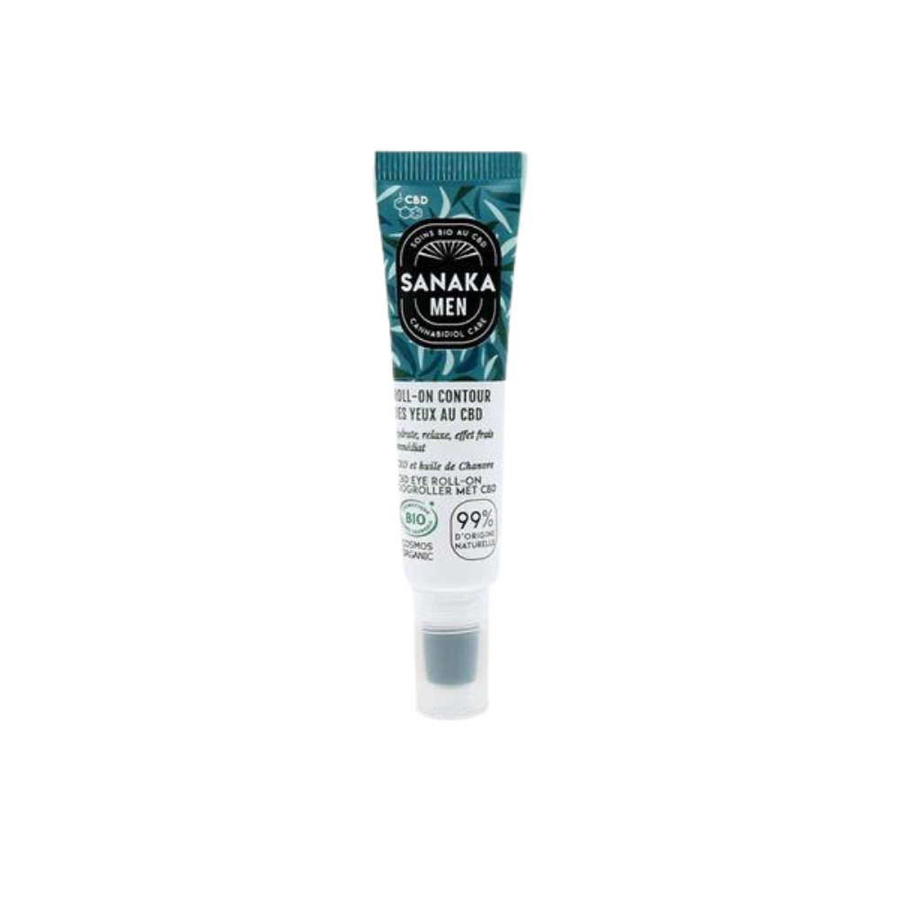 Certified ORGANIC COSMOS and composed of 99% ingredients of natural origin, SANAKA MEN Eye Contour Roll-On with CBD* and ORGANIC hemp oil moisturizes without leaving the skin sticky. Its metal ball gives an instant fresh effect. It contains a complex specifically designed for the eye area, based on hyaluronic acid, caffeine, and green tea extracts.