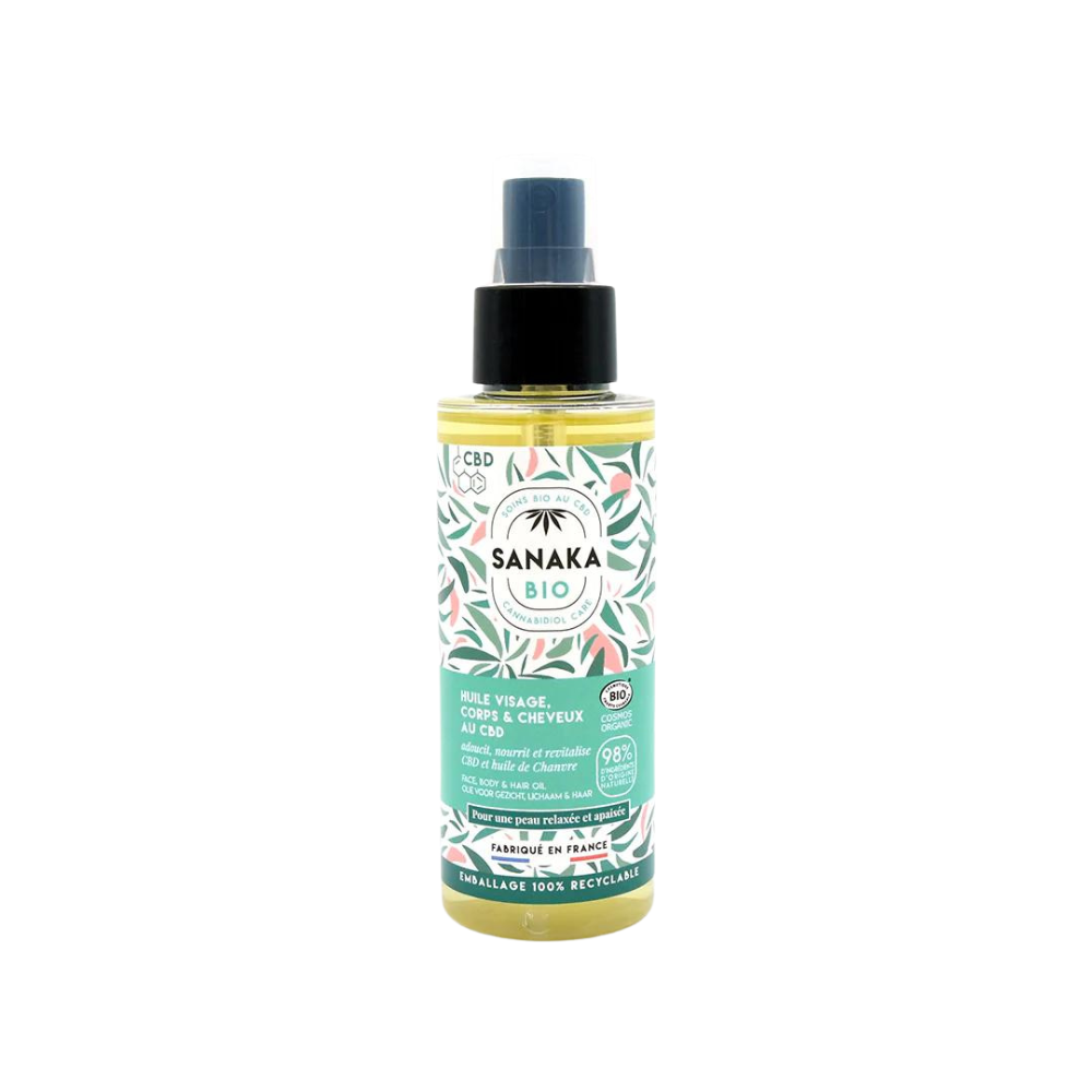 SANAKA face, body, and hair oil with CBD*, enriched with essential fatty acids, is an organic hemp oil that is COSMOS-certified organic and contains 98% ingredients of natural origin. It absorbs quickly without leaving a greasy layer.