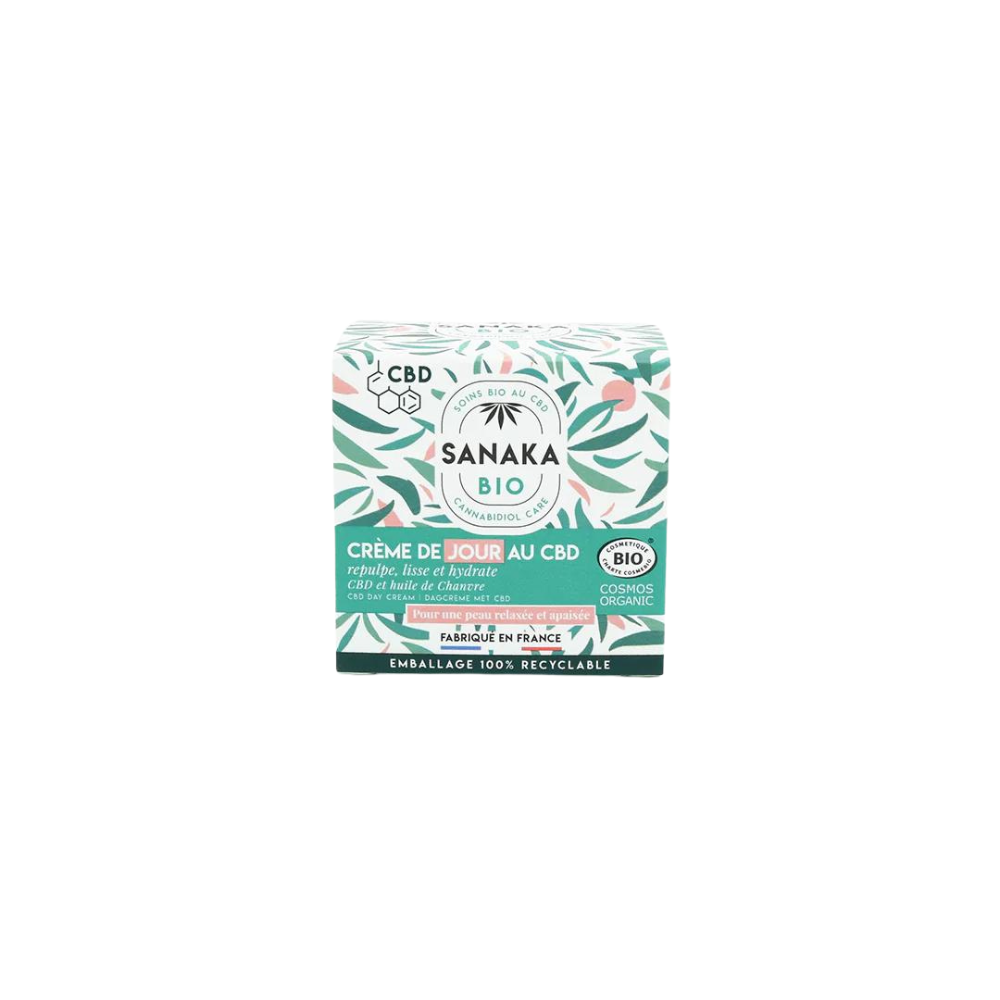 SANAKA day cream with CBD*, organic hemp oil rich in essential fatty acids, hyaluronic acid, and aloe vera gel known for its anti-aging properties. The cream tightens, smooths, moisturizes, and nourishes the skin.