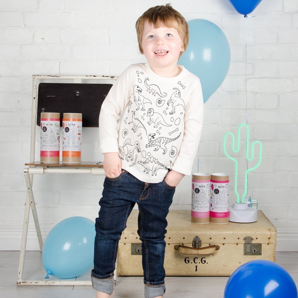 Bring prehistoric giants to life with the Dinosaur Colour-In Top, where kids can colour their own mighty T-Rexes, Stegosauruses and more! The perfect combination of fun creative play and comfortable everyday wear.