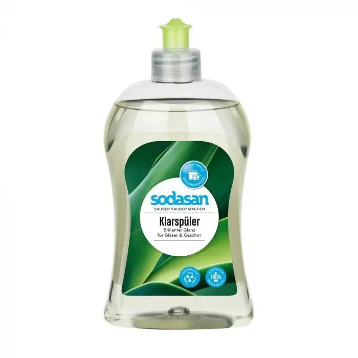 Sodasan clear rinse. For brilliant cleaning and drying results without lime and water stains. Thanks to the practical sealing cap, the rinse aid can be easily dosed into the appropriate dishwasher compartment.