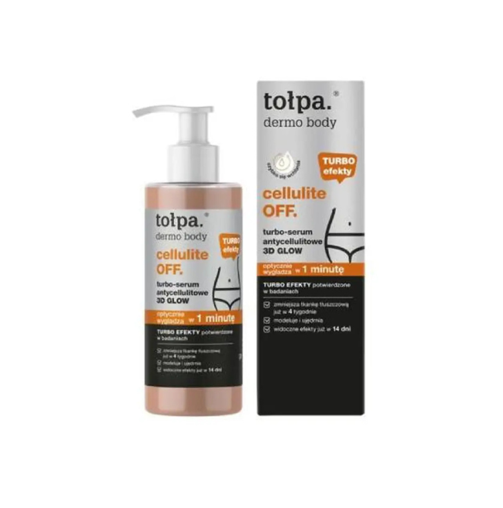 Tołpa® Dermo Body Cellulite OFF Turbo Serum is an innovative body care product that helps fight the appearance of cellulite and improve skin texture from the very first use. The regeneration processes of body skin are slower than those of the face, but thanks to its innovative composition, this serum helps accelerate skin renewal and smooth irregularities.