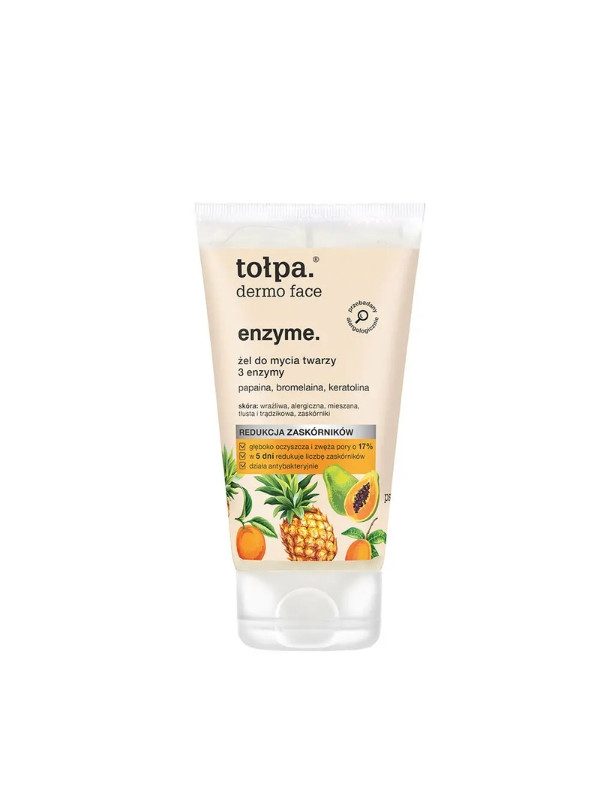 Tołpa Dermo Face Enzyme Face Wash Gel with 3 Enzymes deeply cleanses the skin by removing impurities and excess sebum, while three active enzymes gently exfoliate and open clogged pores.