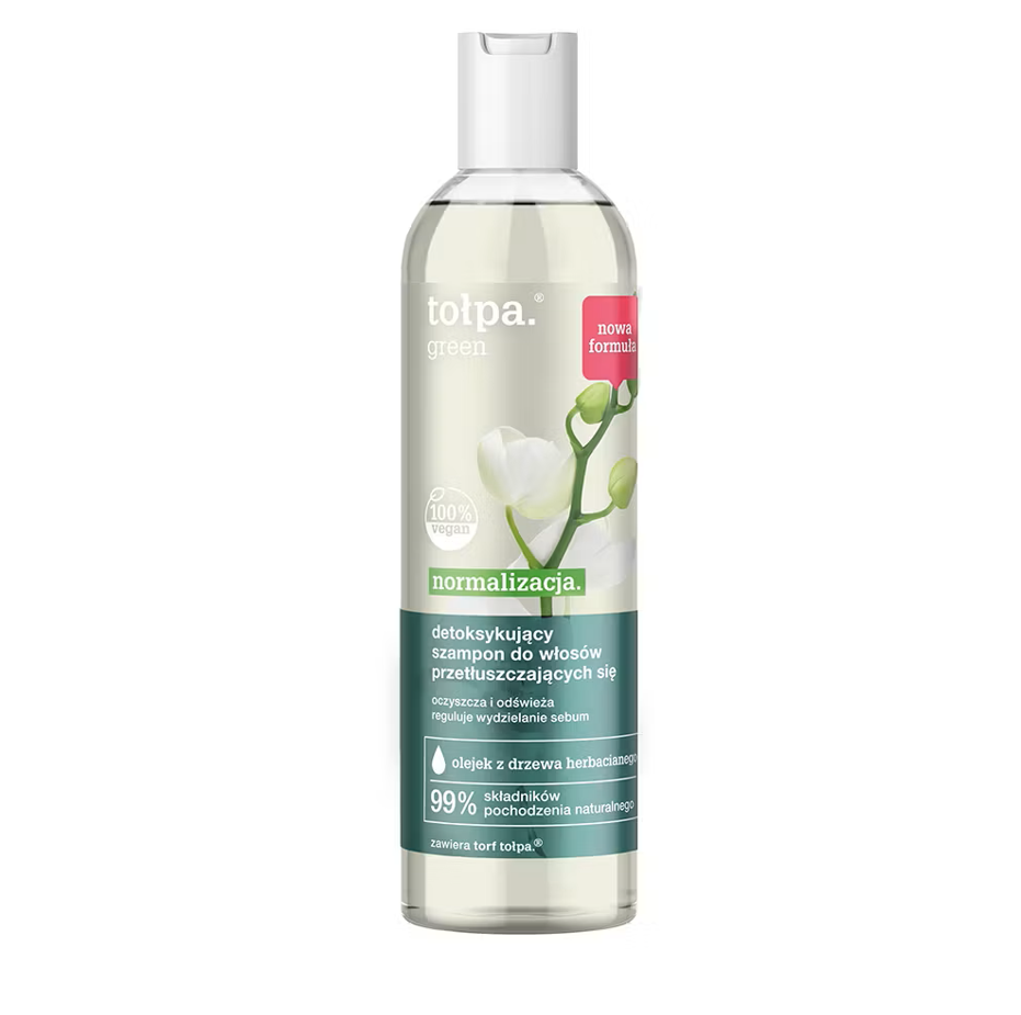 Tołpa peat extract acts as a natural antioxidant, helping to protect and strengthen the scalp. Tea tree oil and burdock root extract help balance sebum production, cleanse the scalp, and reduce oiliness. The shampoo helps lift the hair from the roots, making it lighter, fresher, and more vibrant.