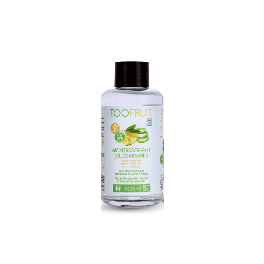 The organic nail polish remover is designed with children in mind. It effectively yet gently removes nail polish without drying out the nails. Its acetone-free formula is also suitable for sensitive skin. The product was tested by 11 volunteers with very sensitive skin over 21 days and twice daily. None of the test subjects developed sensitivity!