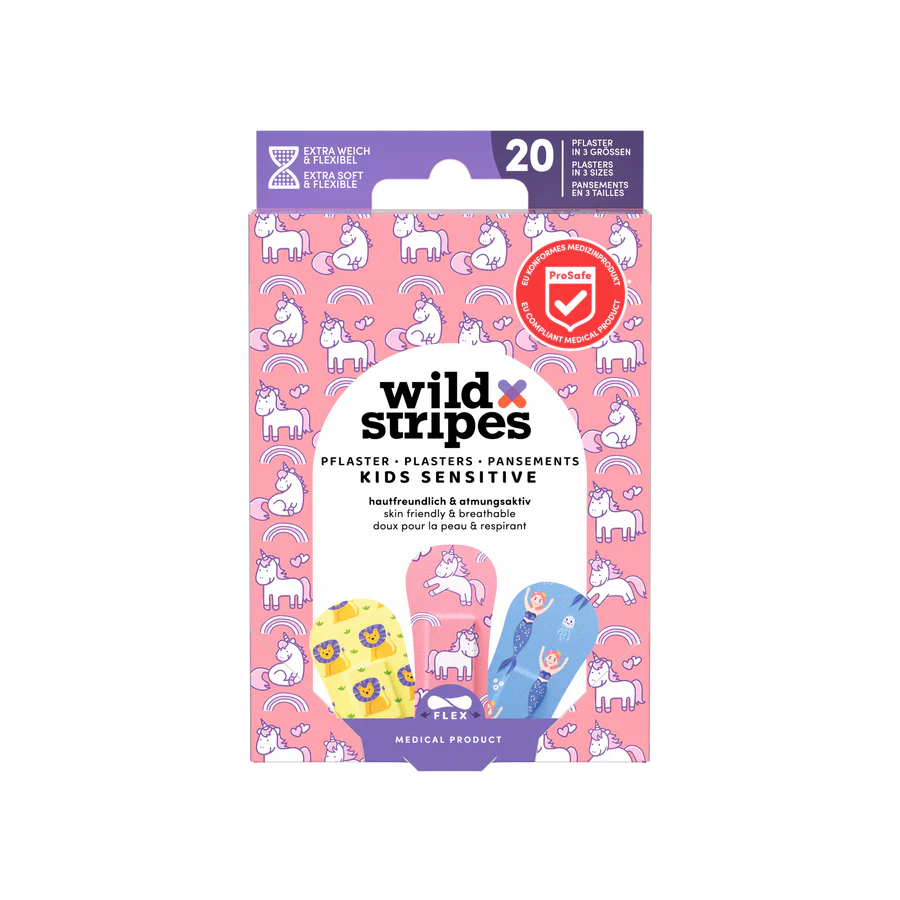 Wild Stripes Classic Sensitive Pastel Fun is a medical product compliant with EU regulations, offering more than just protection. Bandages with fun patterns and pastel colors bring positivity to every day while providing reliable protection for minor wounds. The set is perfect for people with sensitive skin – the bandages are skin-friendly, hypoallergenic, and offer super strong adhesion even for an active lifestyle.